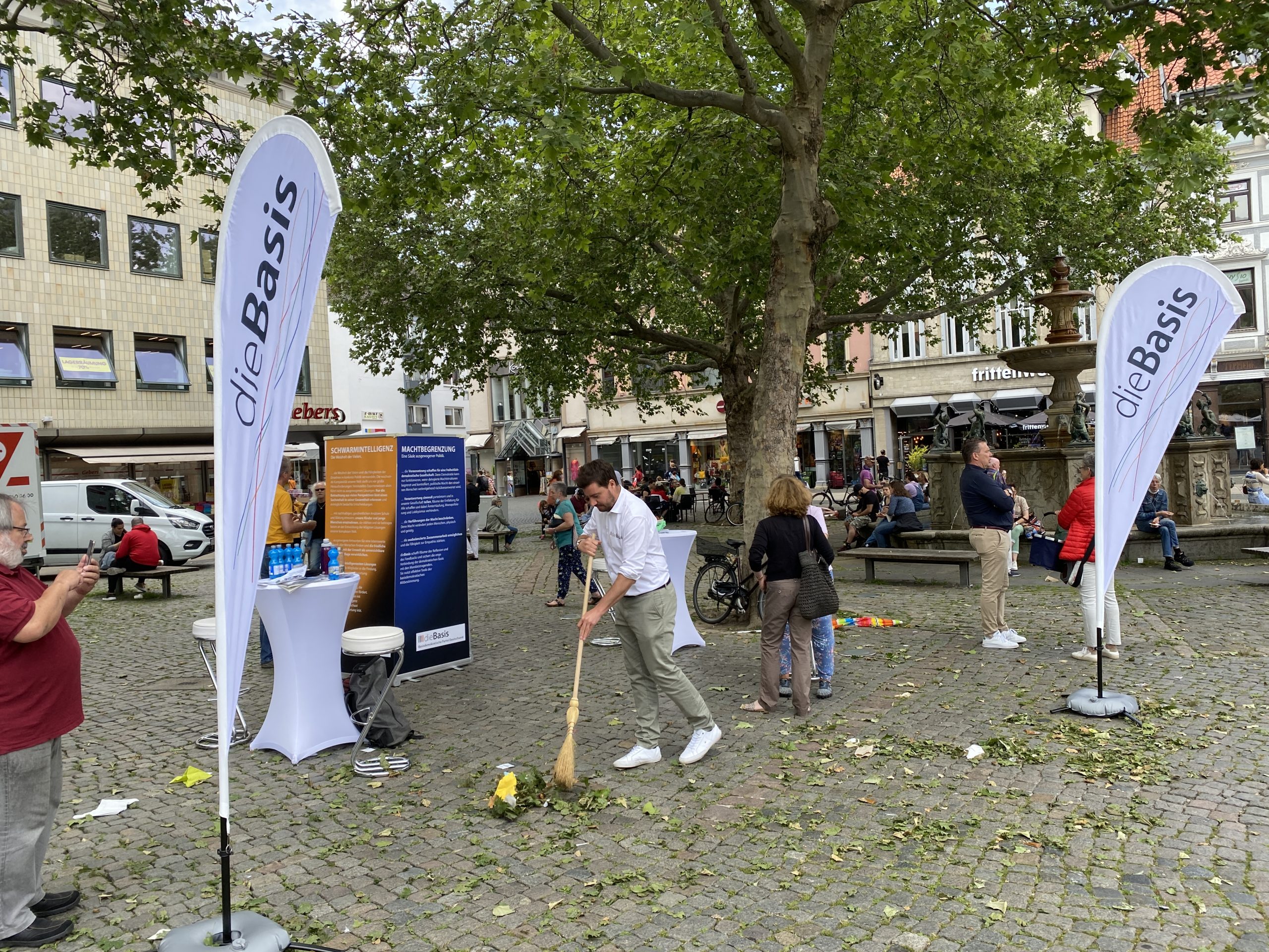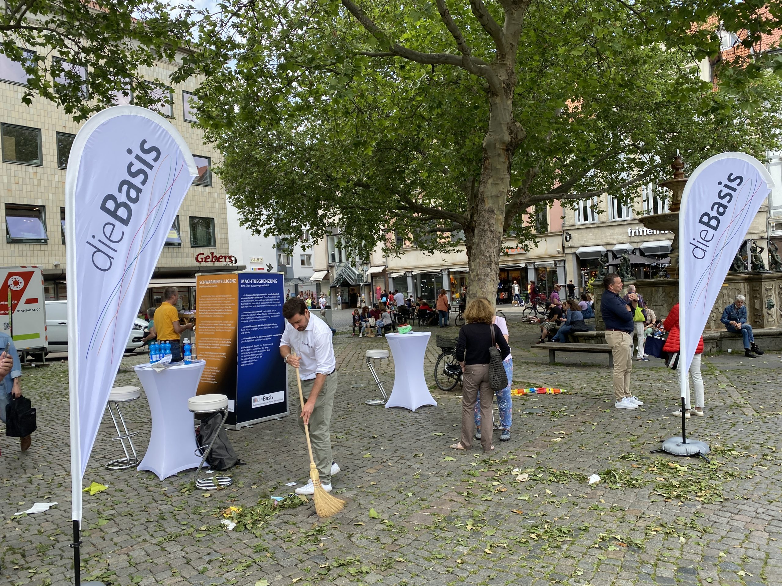 dieBasis Braunschweig im Gespräch mit Bürgern & im Einsatz für einen sauberen Stand.